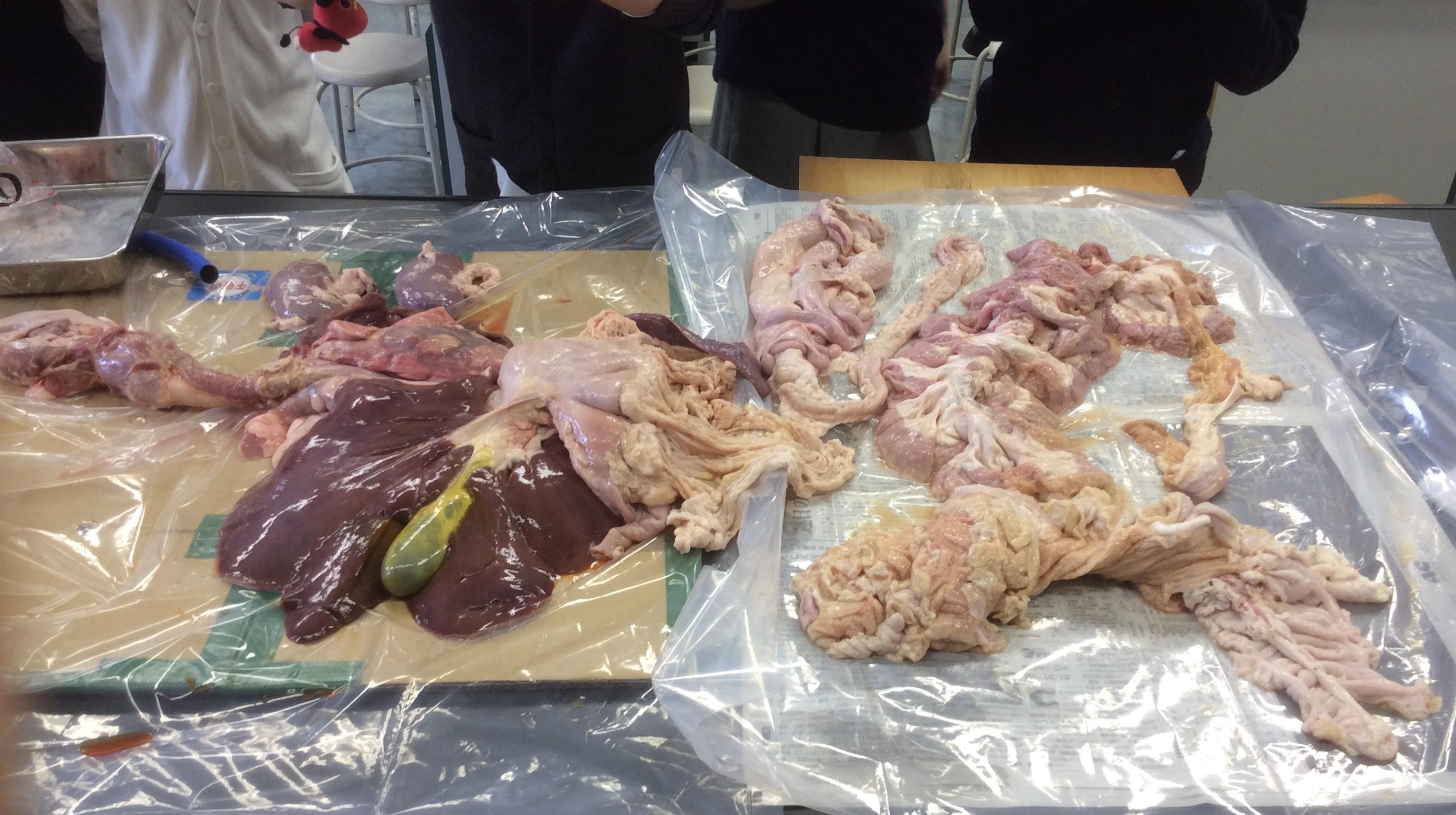 ブタの眼の解剖と同時に、東京芝浦臓器から内蔵一式を取り寄せて観察しました。